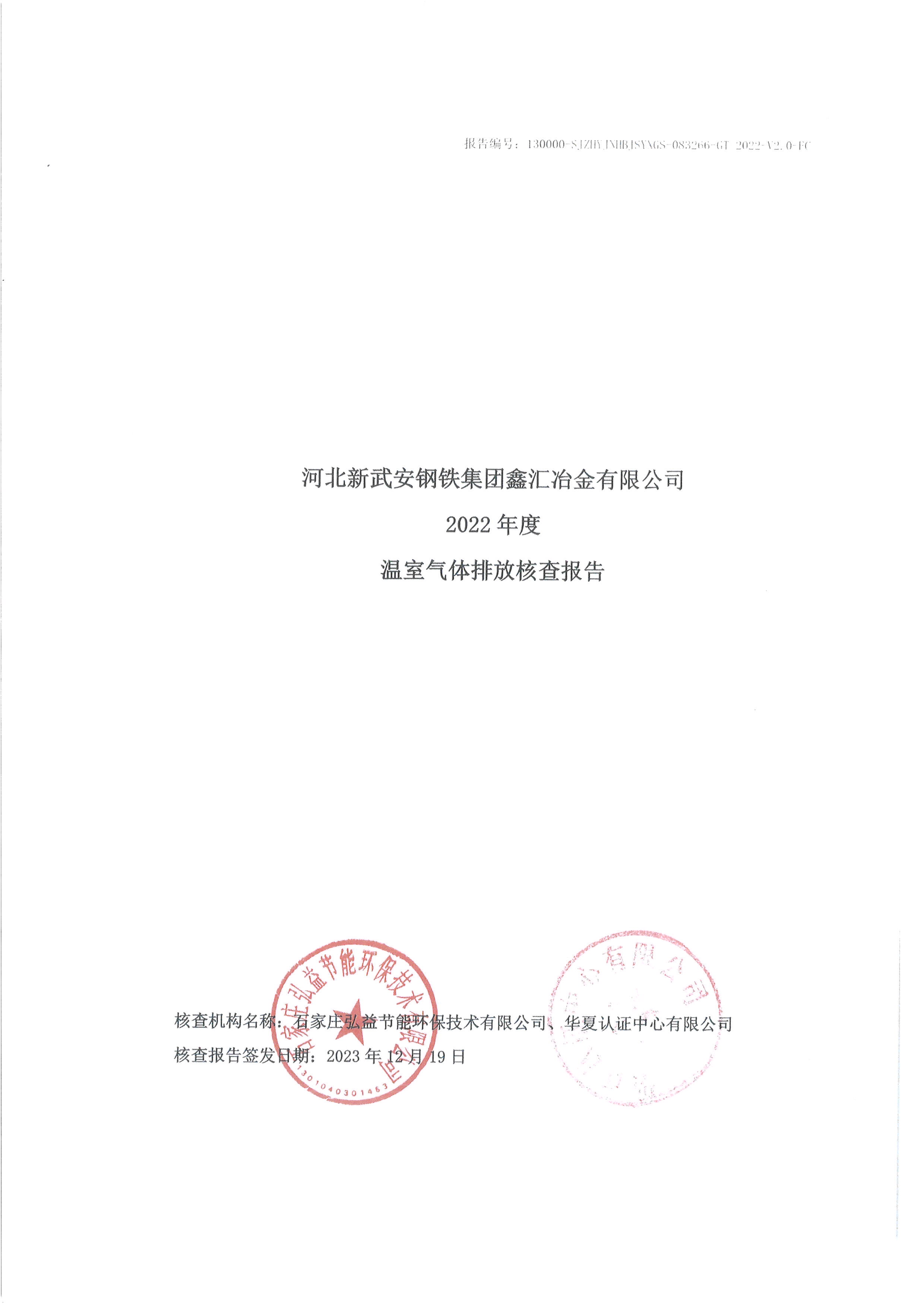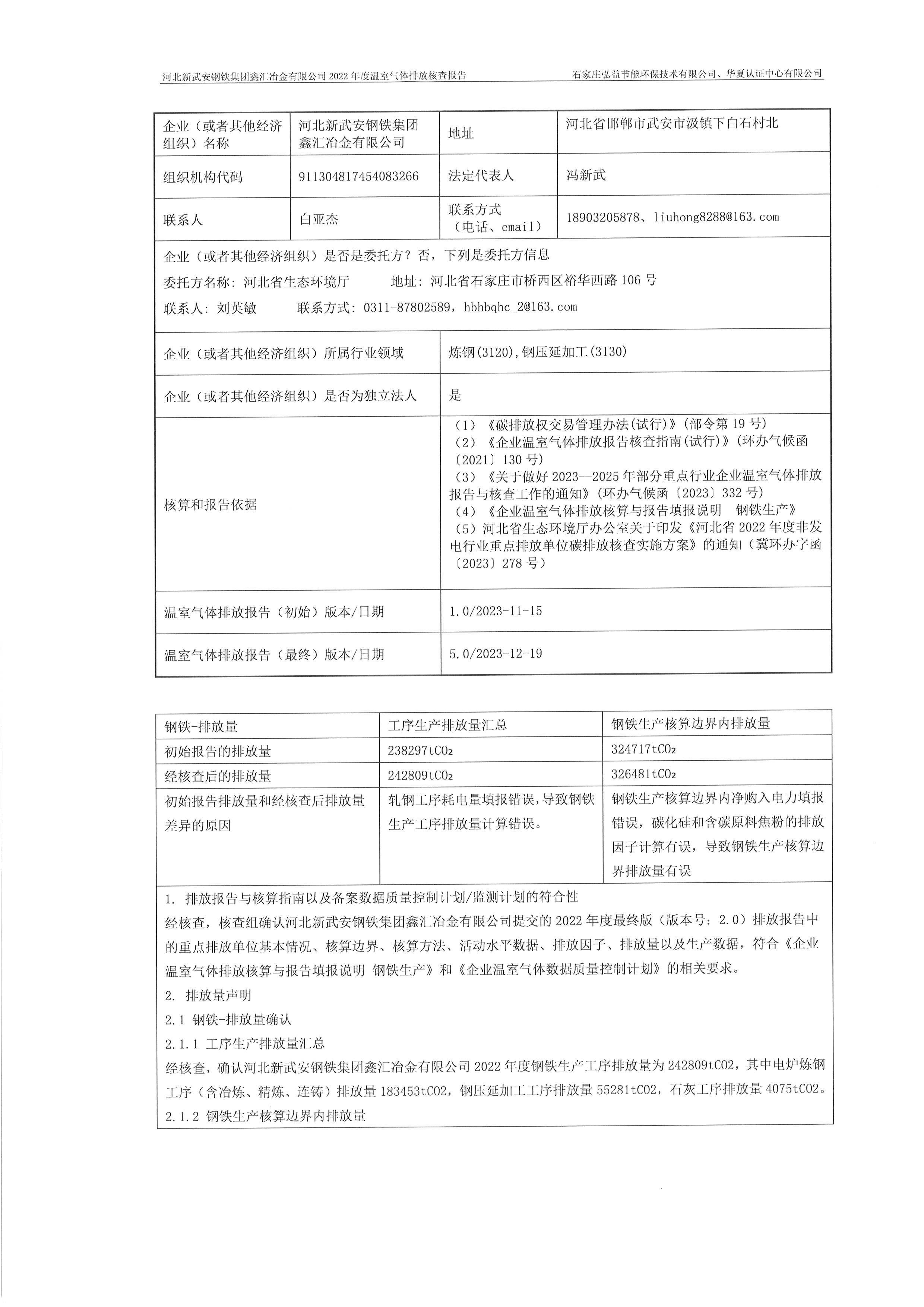 2022年河北新武安鋼鐵集團(tuán)鑫匯冶金有限公司碳排放核查報告